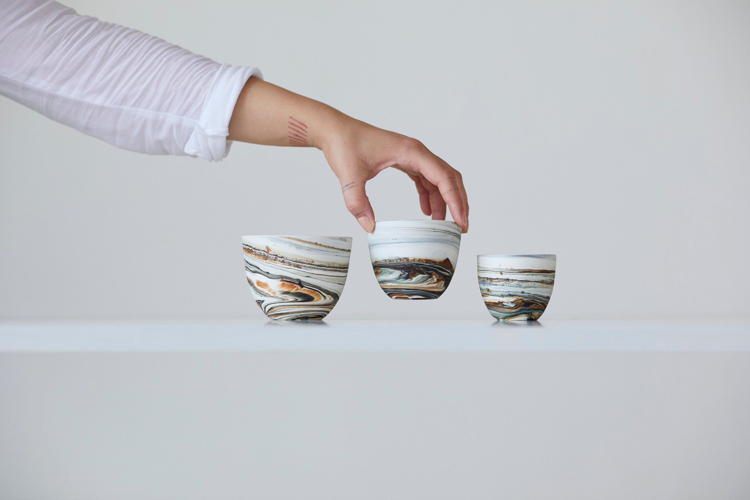 Japonská kaligrafická technika, která pomáhá zklidnit mysl a umožňuje soustředění pouze na daný okamžik. Jako médium je zde použitý porcelán, každý šálek je trochu jiný, ale všechny mají za cíl upomínat shodo filosofii při každodenním užívání.